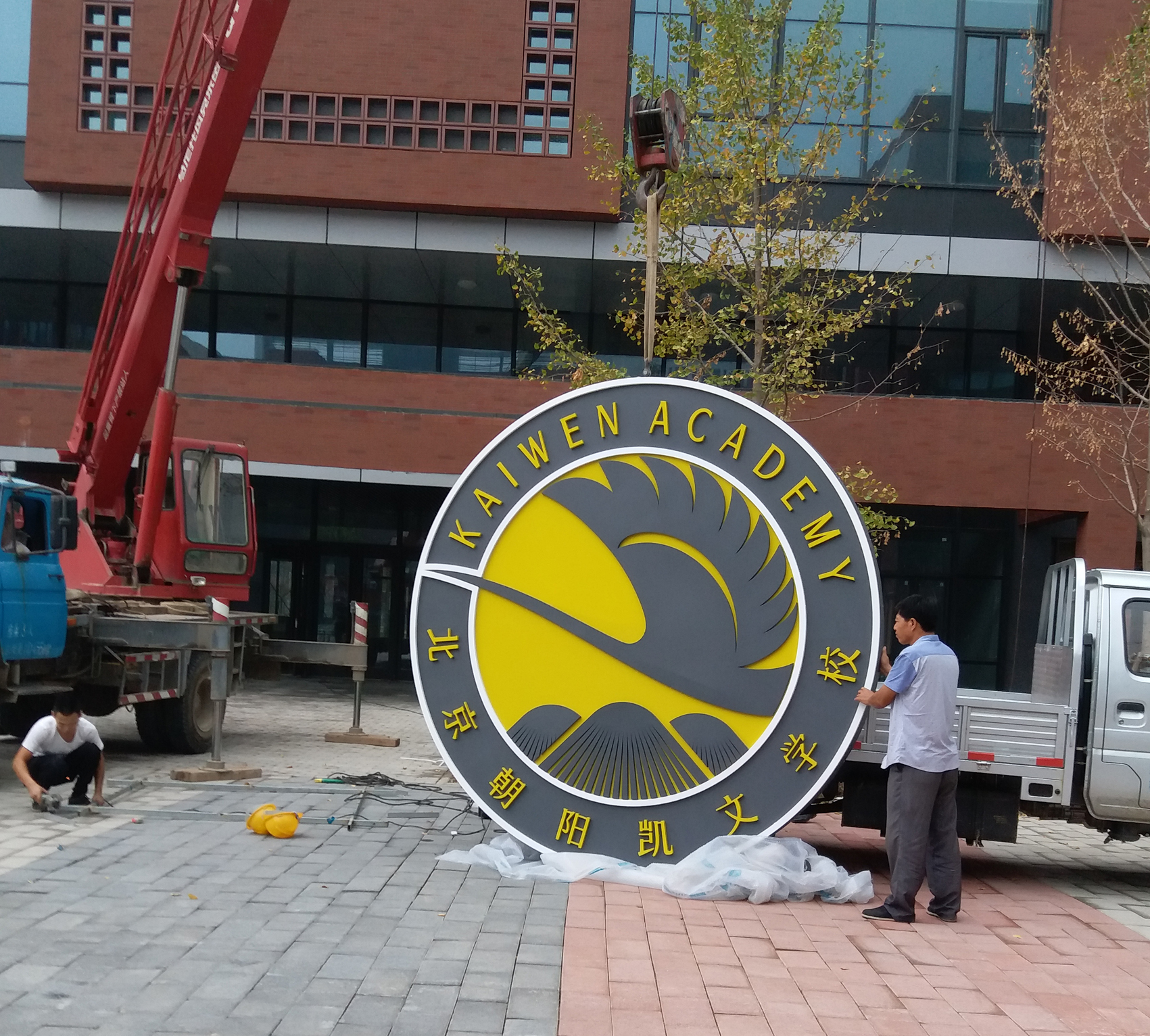 北京朝阳凯文国际学校外墙LOGO标识安装