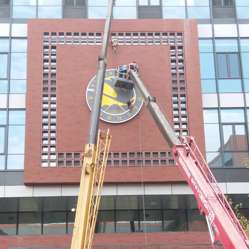 北京朝阳凯文国际学校外墙LOGO标识安装现场