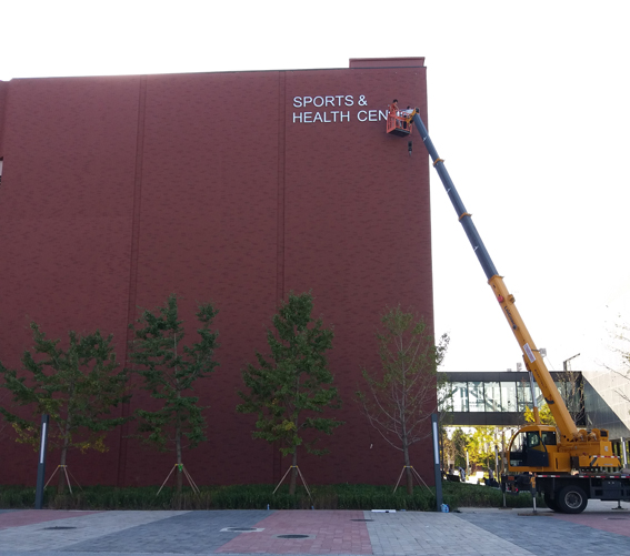北京朝阳凯文国际学校外墙标识安装现场-3
