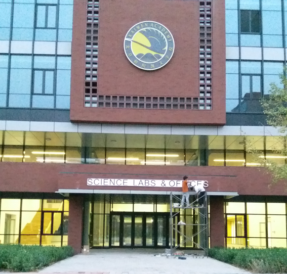 北京朝阳凯文国际学校外墙标识安装现场-5