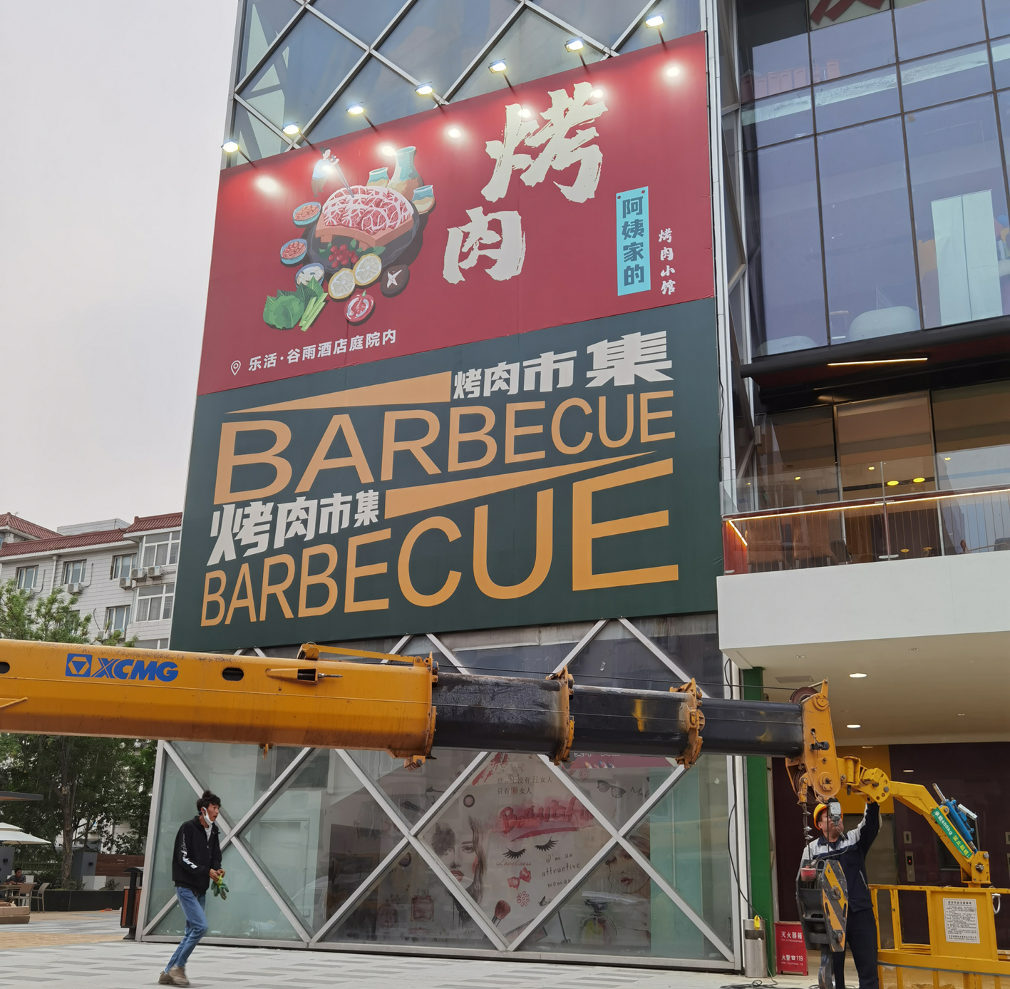 石景山乐活谷雨酒店-外墙广告牌安装现场2